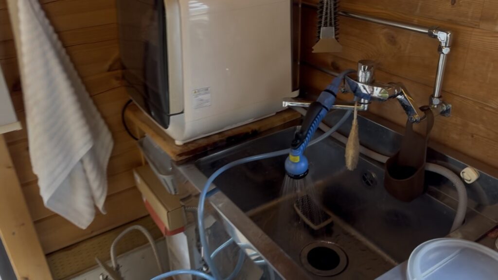 食器棚っぽいのを作ろう基地のキッチン棟には、冷蔵庫や温水器などそろっているのですが、食器というのはあまり使っていませんでした。 いつも使い捨ての紙皿を使っていたのです。 けれど、プレゼントにボウル皿をもらったもので、こうなると食洗機が欲しくなり、お皿もキャンカーの中にあったものを出してきて使うことに。 さて、そうなってく…